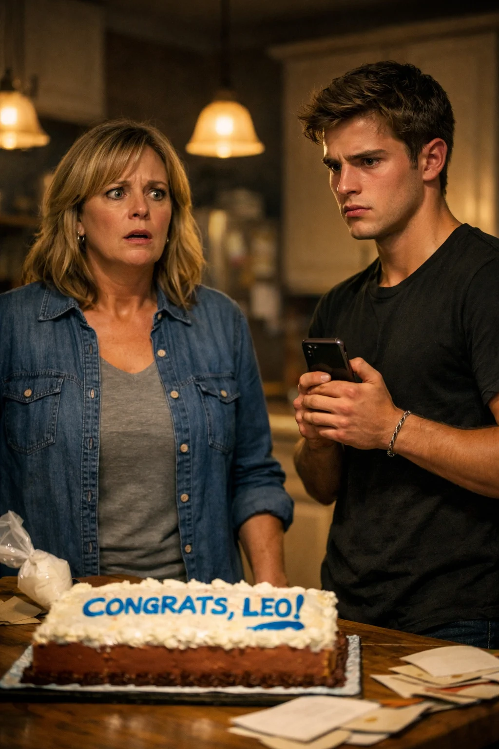 Icing na jeftinoj šlag torti iz supermarketa, jarko plava slova: “CONGRATS, LEO!” Bila sam nad sudoperom, sa vrećicom za dekoraciju u ruci, kada je moj sin ušao u kuhinju kao da je video sablast. To je bilo dovoljno da spustim šlag.