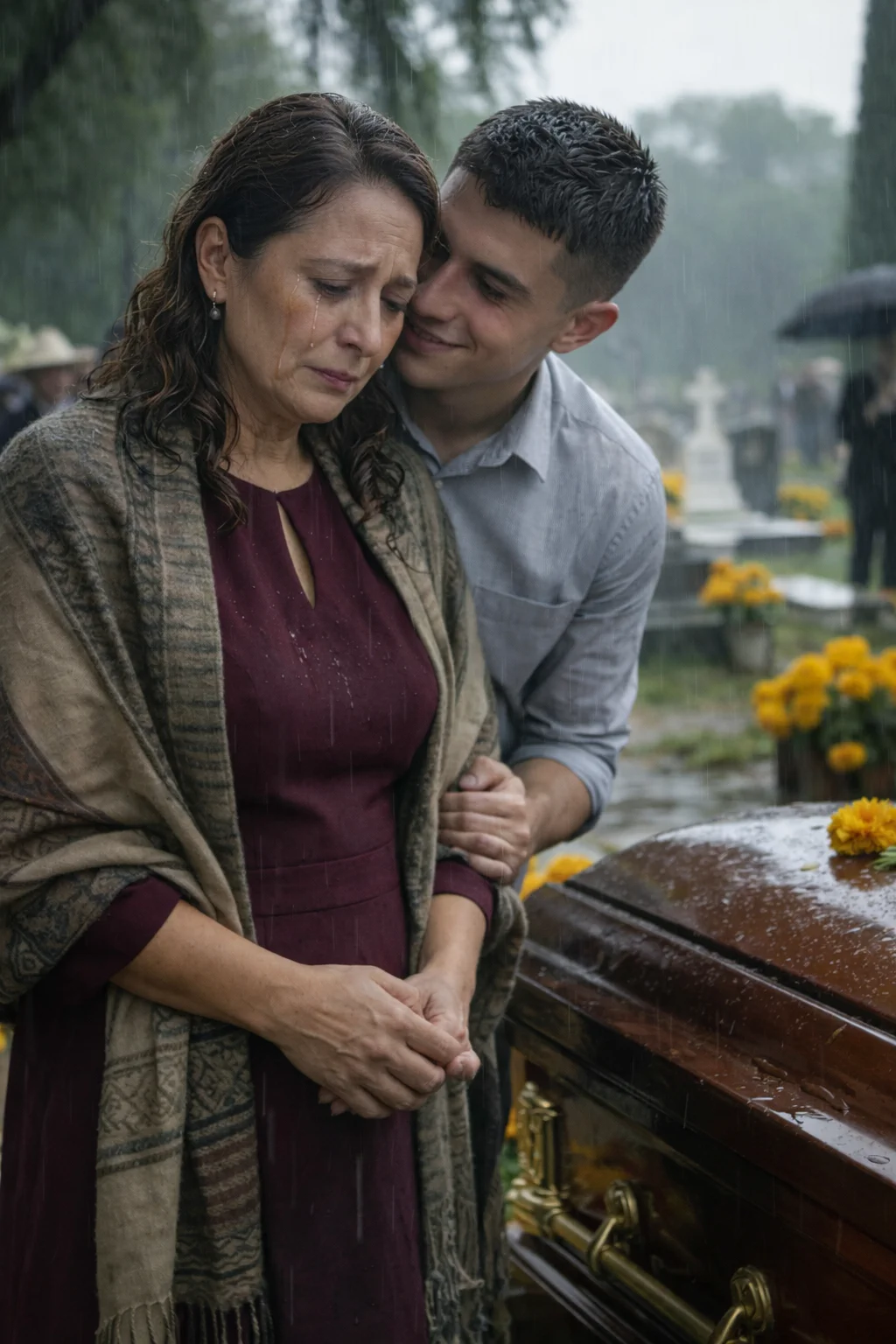 Vazduh je tog jutra bio težak, natopljen mirisom nevena i mokre zemlje. Crnina mi je pritiskala ramena, a tanak šal nije mogao da sakrije suze koje su, kao da su znale put, ćutke klizile niz obraz. Pored mene, Diego — moj sin — stajao je krut, vilice stegnute, pogleda prikovanog za kovčeg kao za nedovršen zadatak. Eduardo je otišao naglo, srčani udar, rekli su. Ali promene su počele pre toga, ne u njegovom srcu, već u Diegovom.