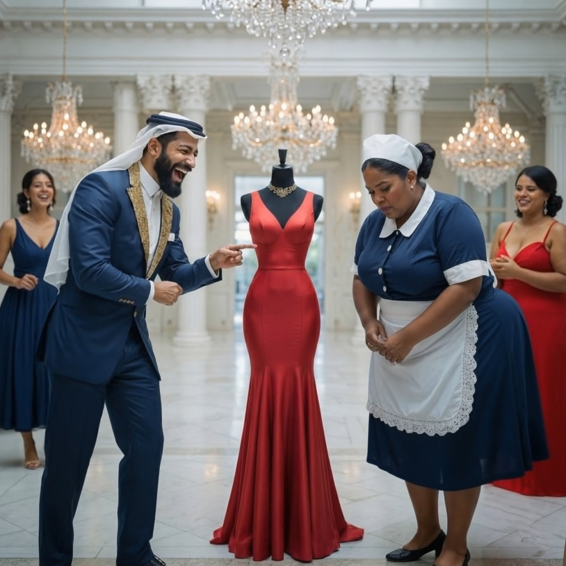 U ogromnom mramornom dvorcu šejha Haleda sve je mirisalo na raskoš i tačnost. Radnici su trčali između stolova, kačili kristalne girlande, proveravali raspored svetla – svaka sveća, svaka mašna, svaka nota večernjeg plana bila je podešena da očara. A u središtu sale, kao žar usred leda, stajao je maneken u vatrenocrvenoj haljini sa šlepom: uska, blistava, očigledno skrojena da zapali poglede i govori jezikom moći. 💃