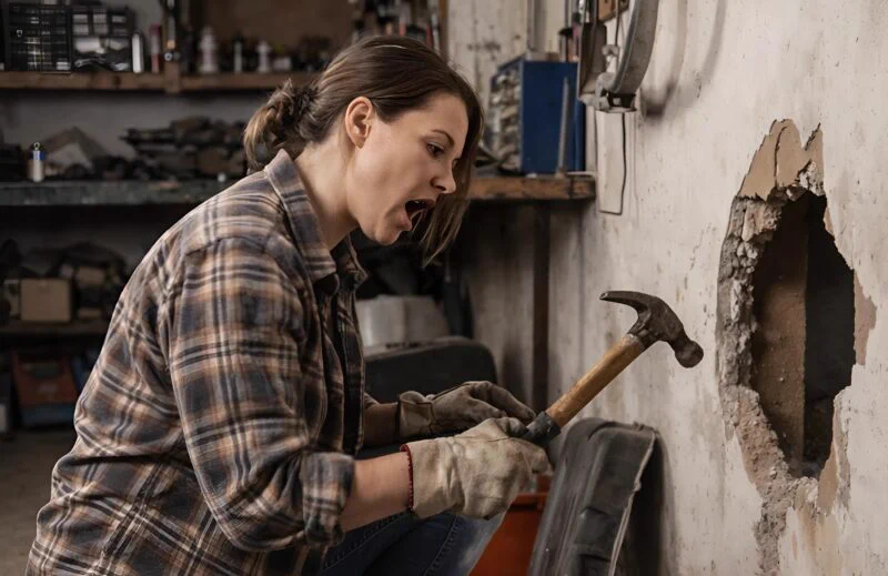 Uzela sam čekić. Prvi udarac — prigušen. Drugi — tanka pukotina. Treći — malter se sručio kao sneg. Nastavila sam da udaram, dok se nije otvorila uska niša. Kad je zid popustio iznutra, videla sam obris i klekla, kao da su mi noge same otkazale.