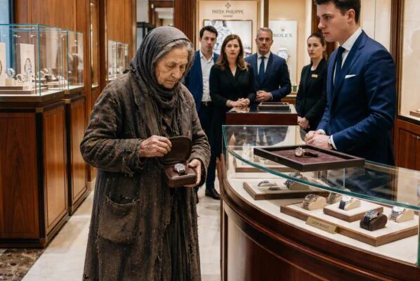 Rečenica „Niste na svom mjestu…“ zaledila je butik, stvarajući trenutak tihe napetosti. Pogledi su se usmerili prema starijoj ženi koja je stajala na ulazu, obučena u istrošen kaput i iznošene cipele, potpuno suprotno od raskoši oko nje. U tom svetu luksuza, ona je predstavljala prekretnicu običnog života.