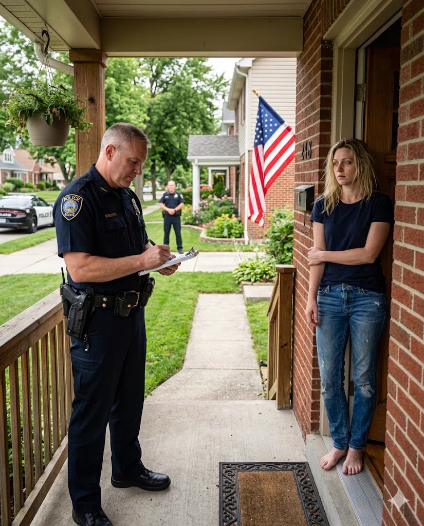 U 8:00 neko udara na vrata. Ne kuca — udara, kao neko ko veruje da mu je pristup pravo, ne privilegija. Dvojica policajaca. „Vaš muž je prijavio porodični spor. Kaže da ste ga zaključali iz njegove kuće.“ Pokažem poruku kroz lanac. Stariji čita. Pa opet. „Je l’ ovo stvarno?“ — „Koliko znam, poslao je iz Vegasa odmah po ‘venčanju’.“